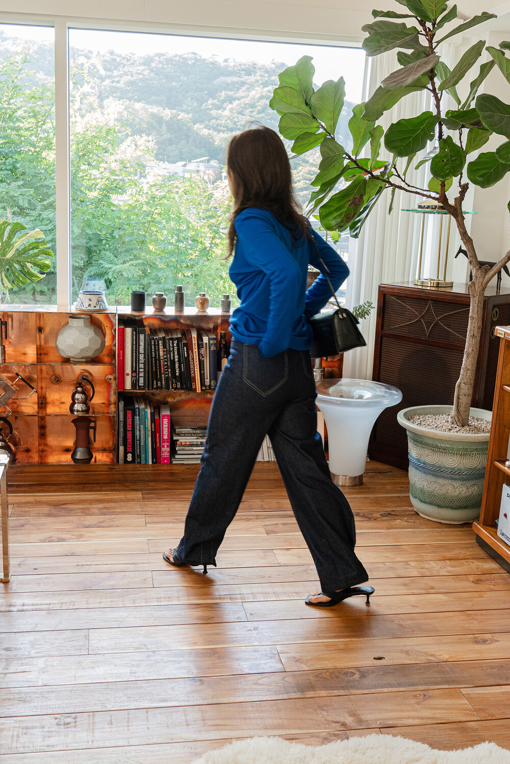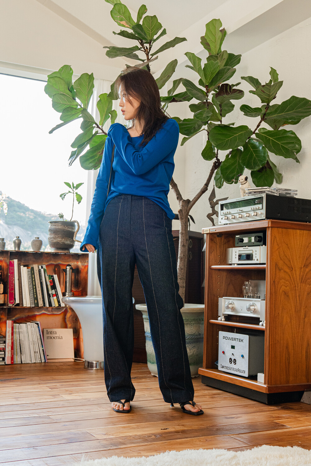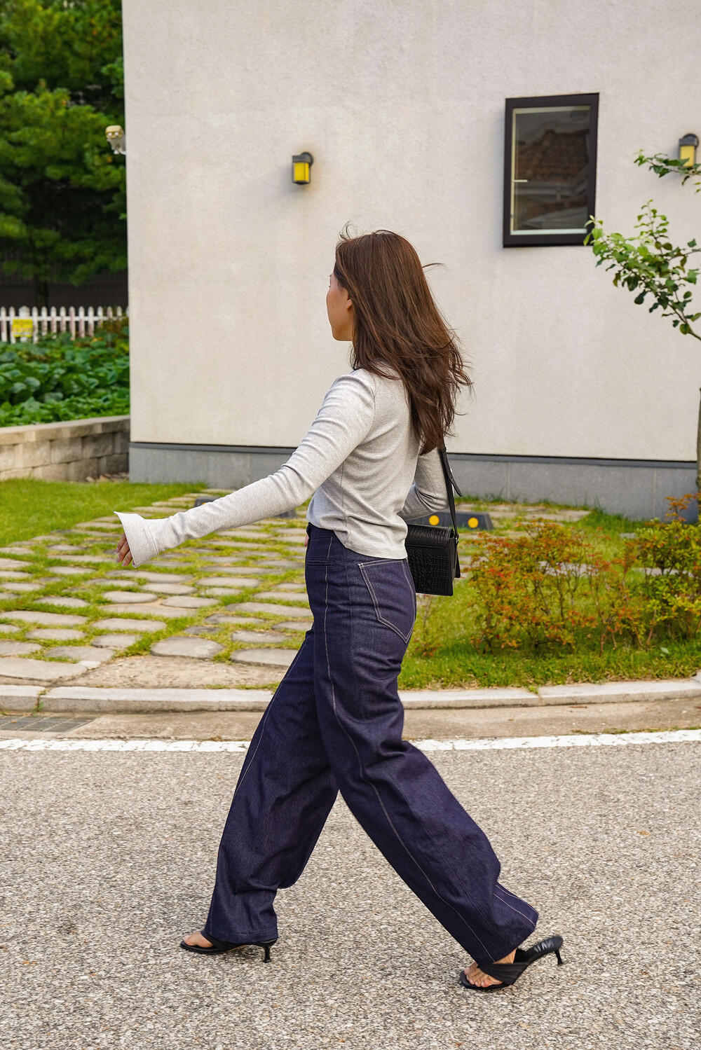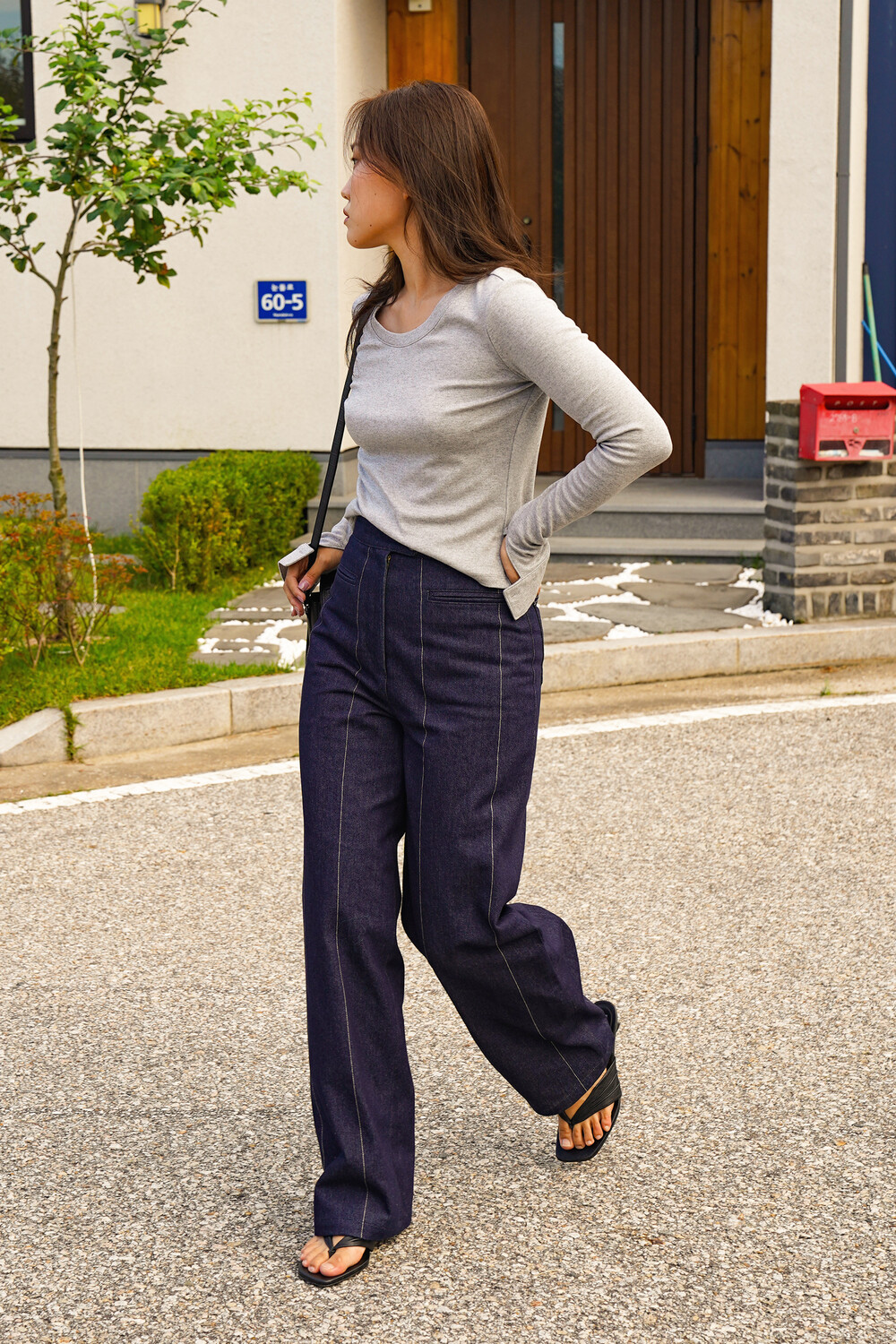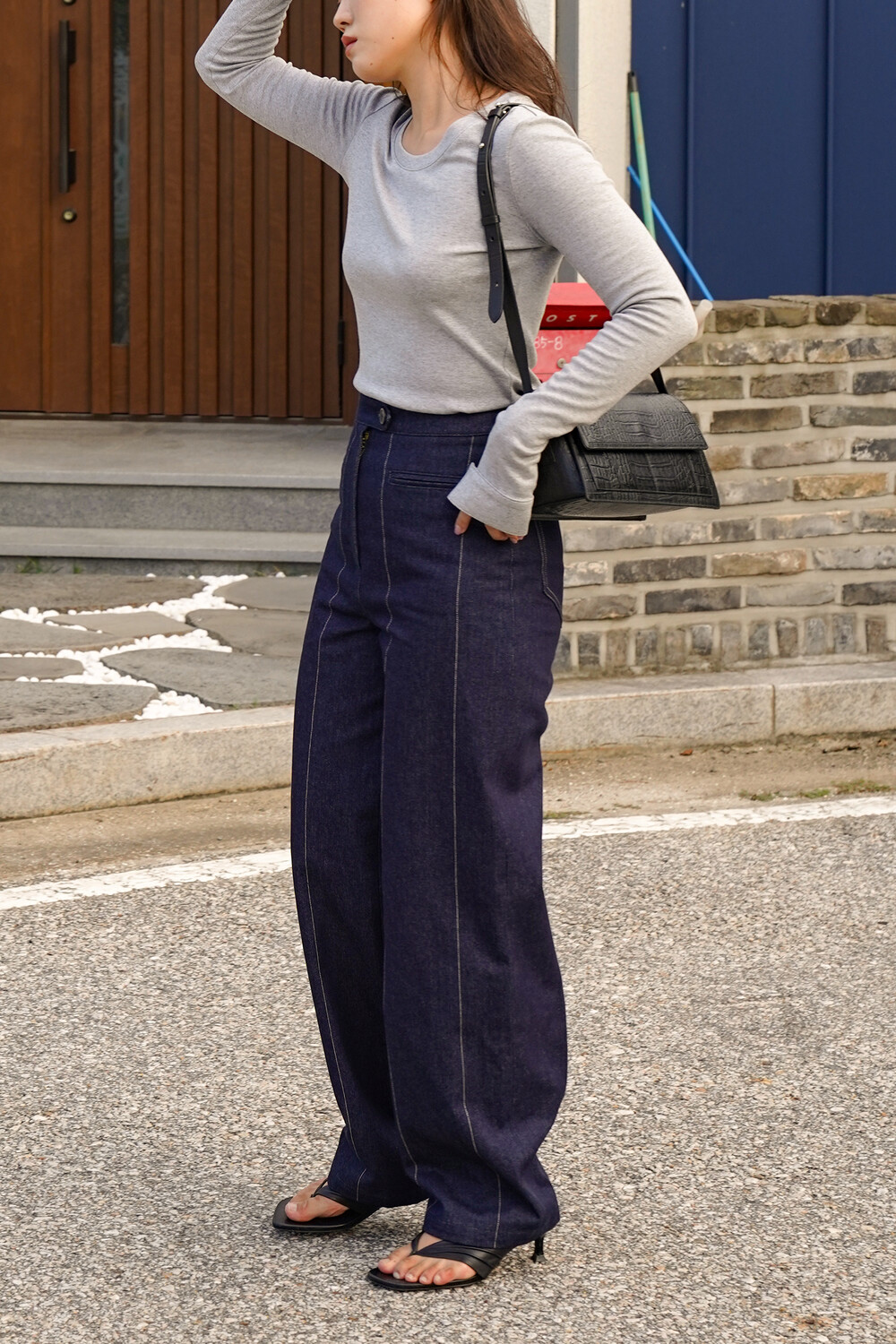 Oval-Hem Stitch Denim Pants in Indigo
