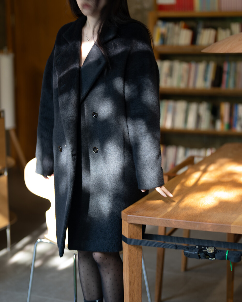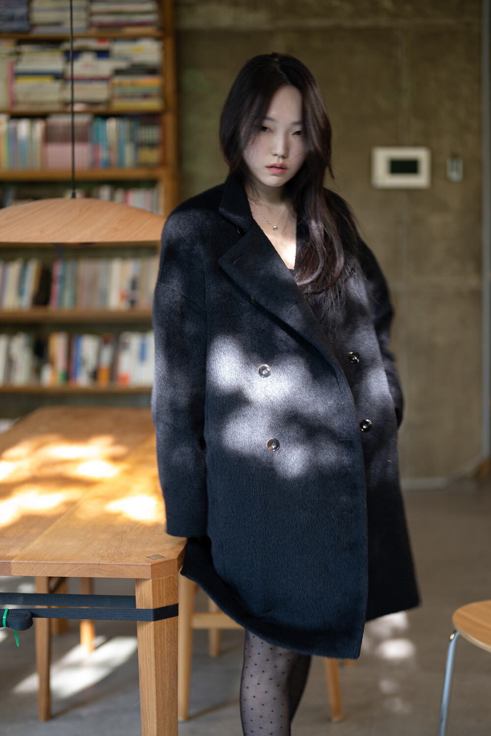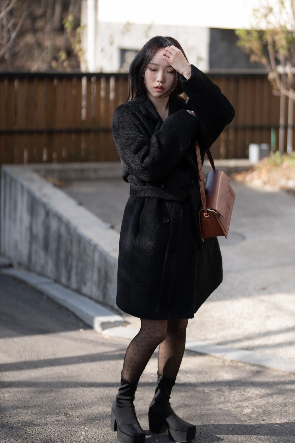 "작년부터 꿈꿨던, 헤어리하고 박시한 핏의 포근한 겨울코트는 이런 모습이었어요.