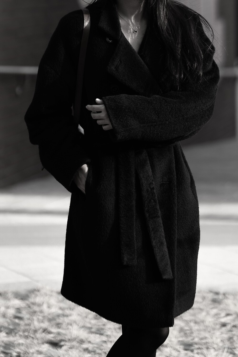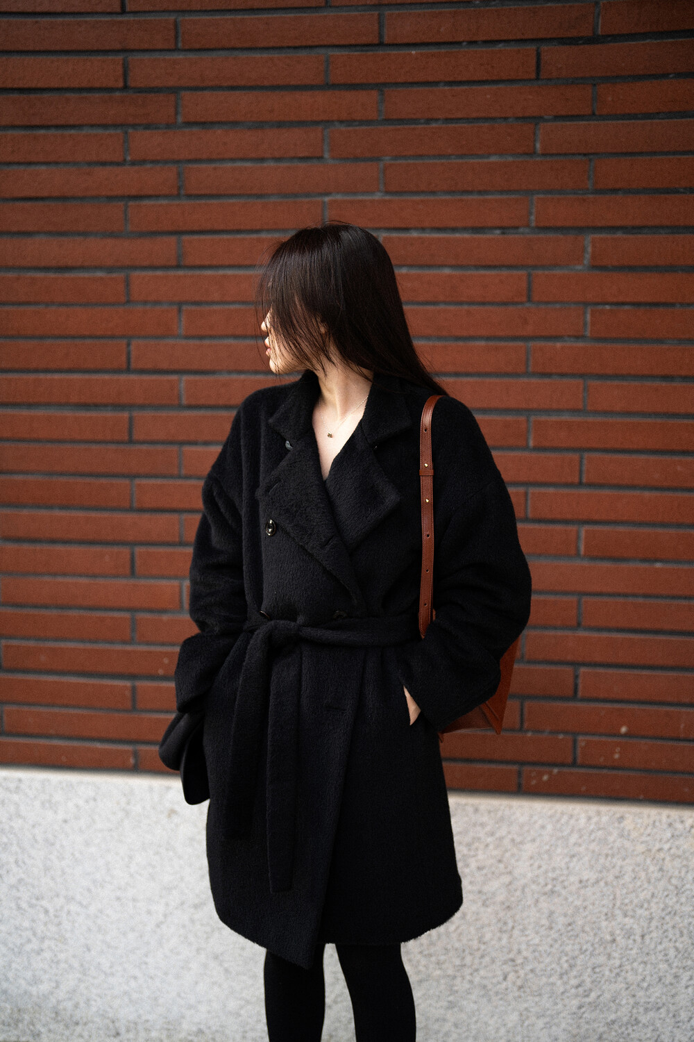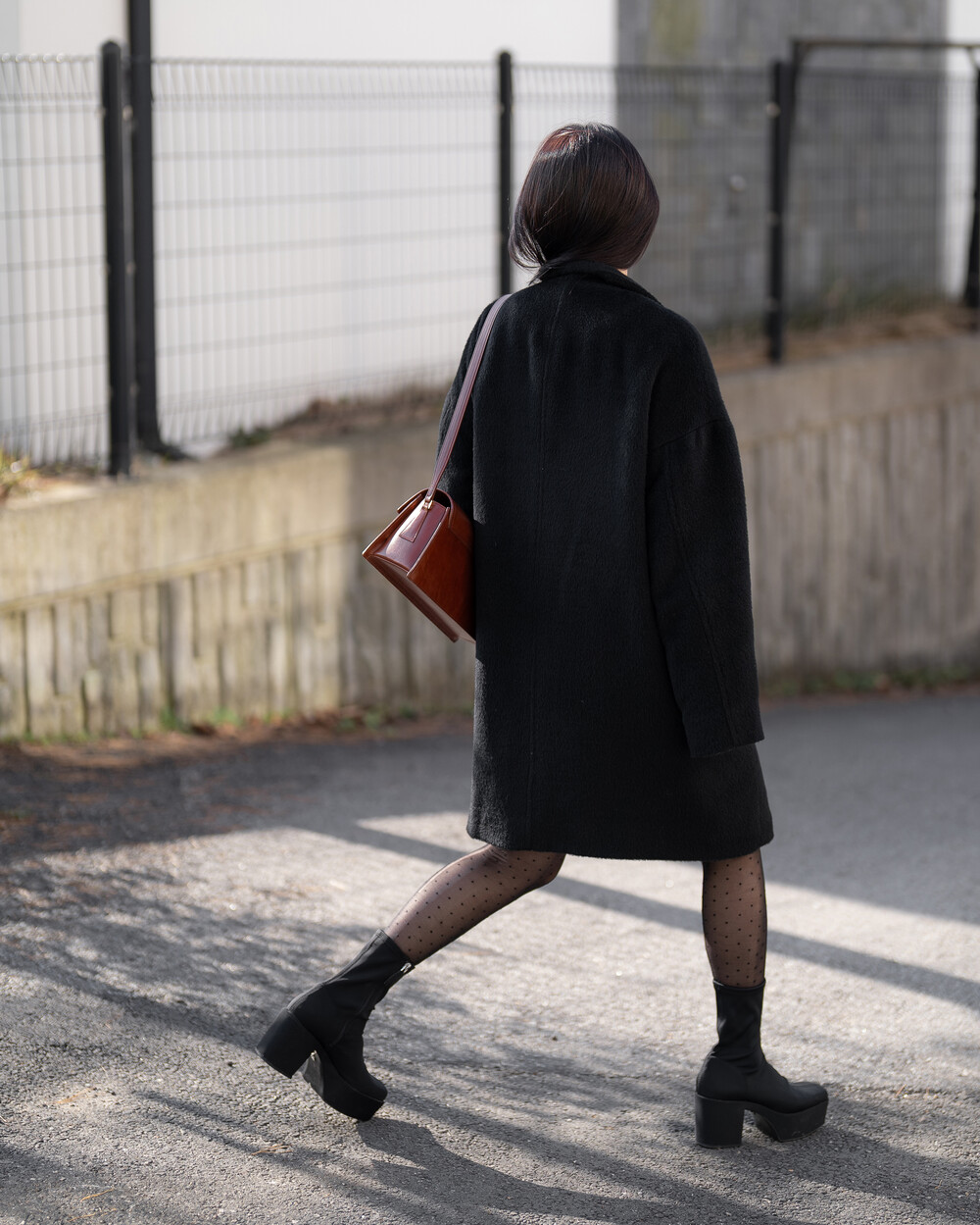 "작년부터 꿈꿨던, 헤어리하고 박시한 핏의 포근한 겨울코트는 이런 모습이었어요.