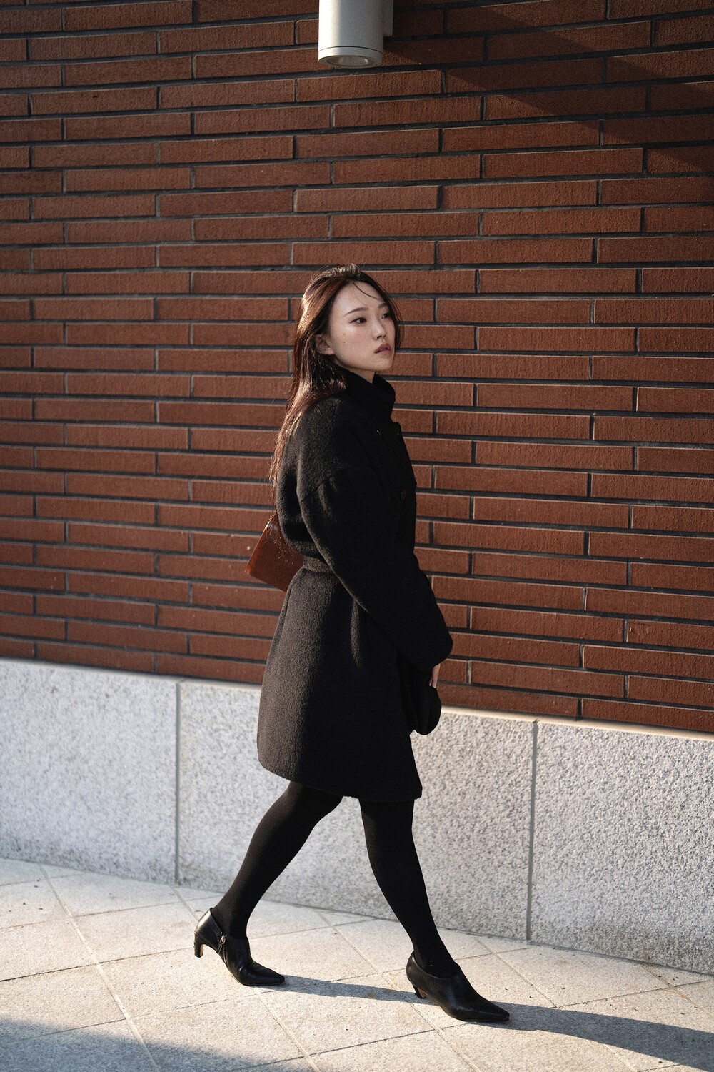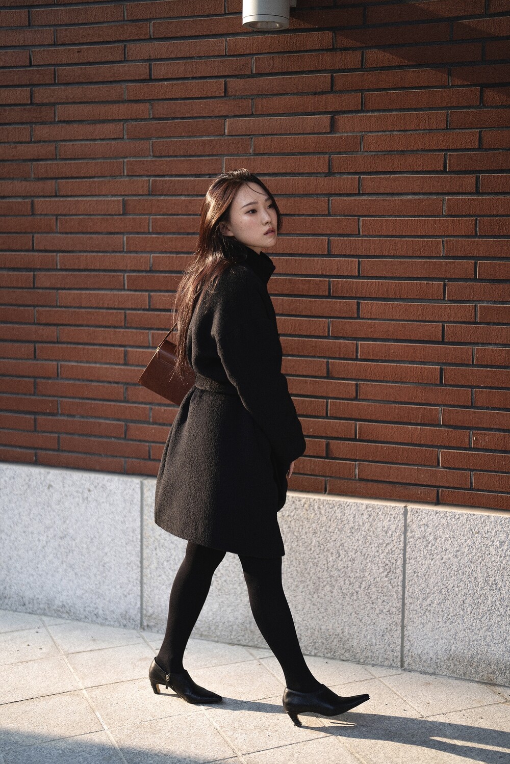 단추를 모두 잠그고, 카라를 올리면 뒷목까지 가려주는 따뜻함.
