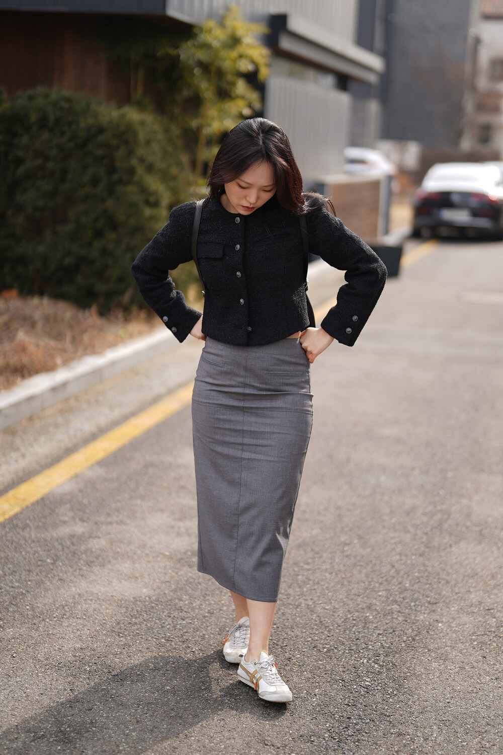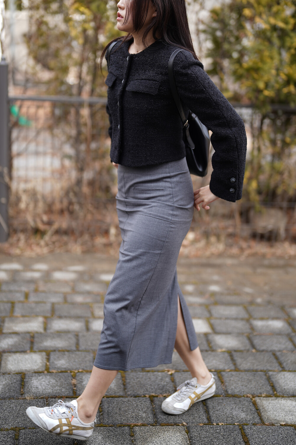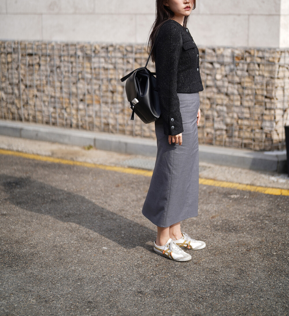 트임 덕분에 팔랑이는 모양이 걸을 때 특히나 더 예쁜 스커트예요.