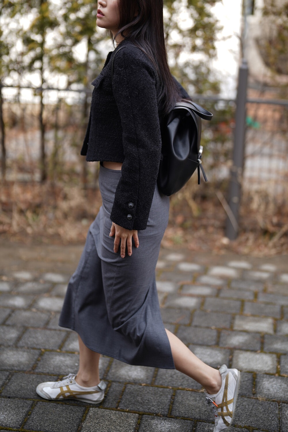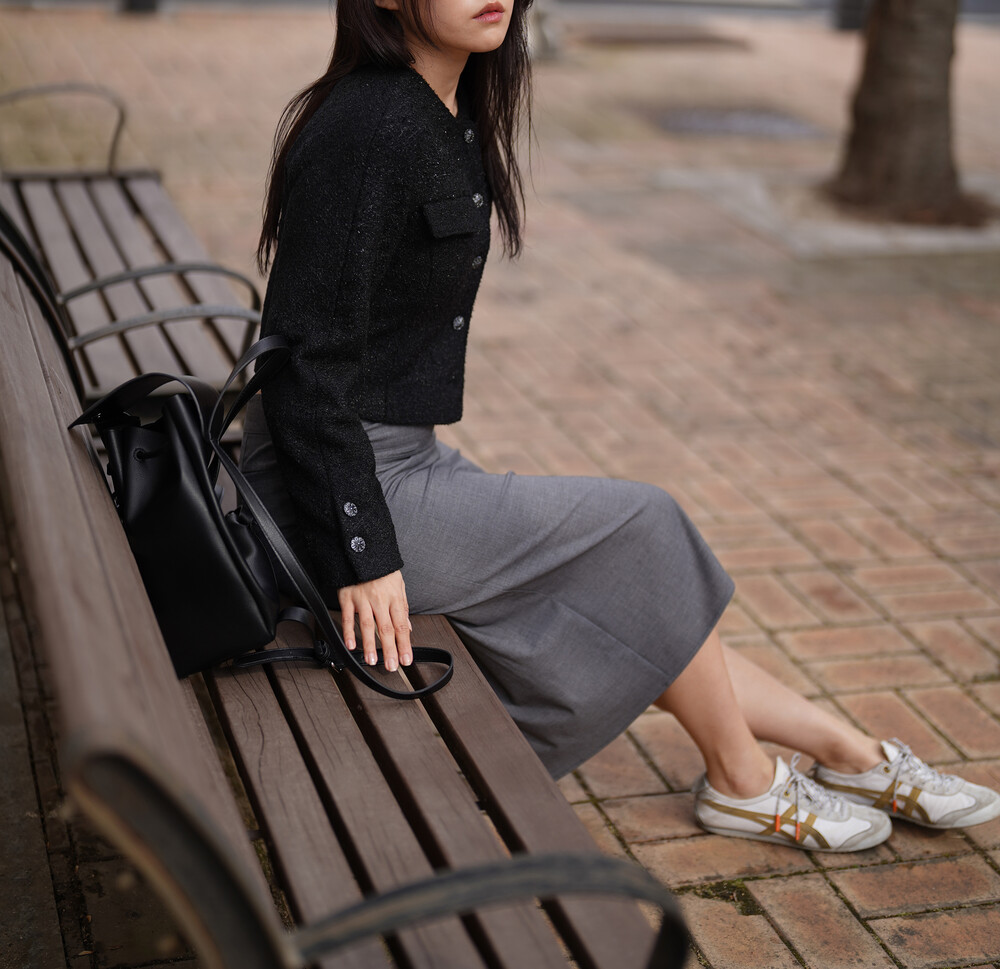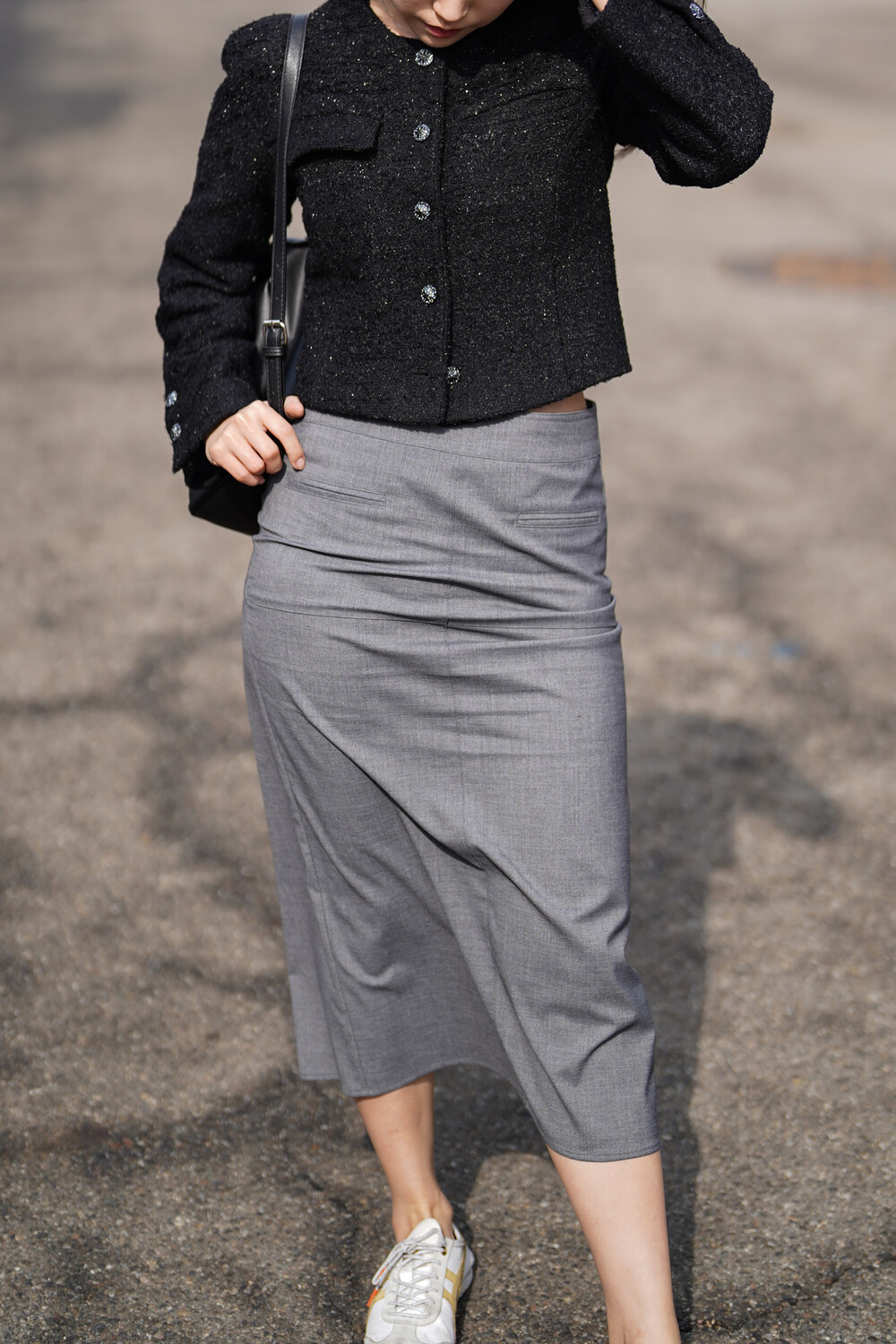 트임 덕분에 팔랑이는 모양이 걸을 때 특히나 더 예쁜 스커트예요.