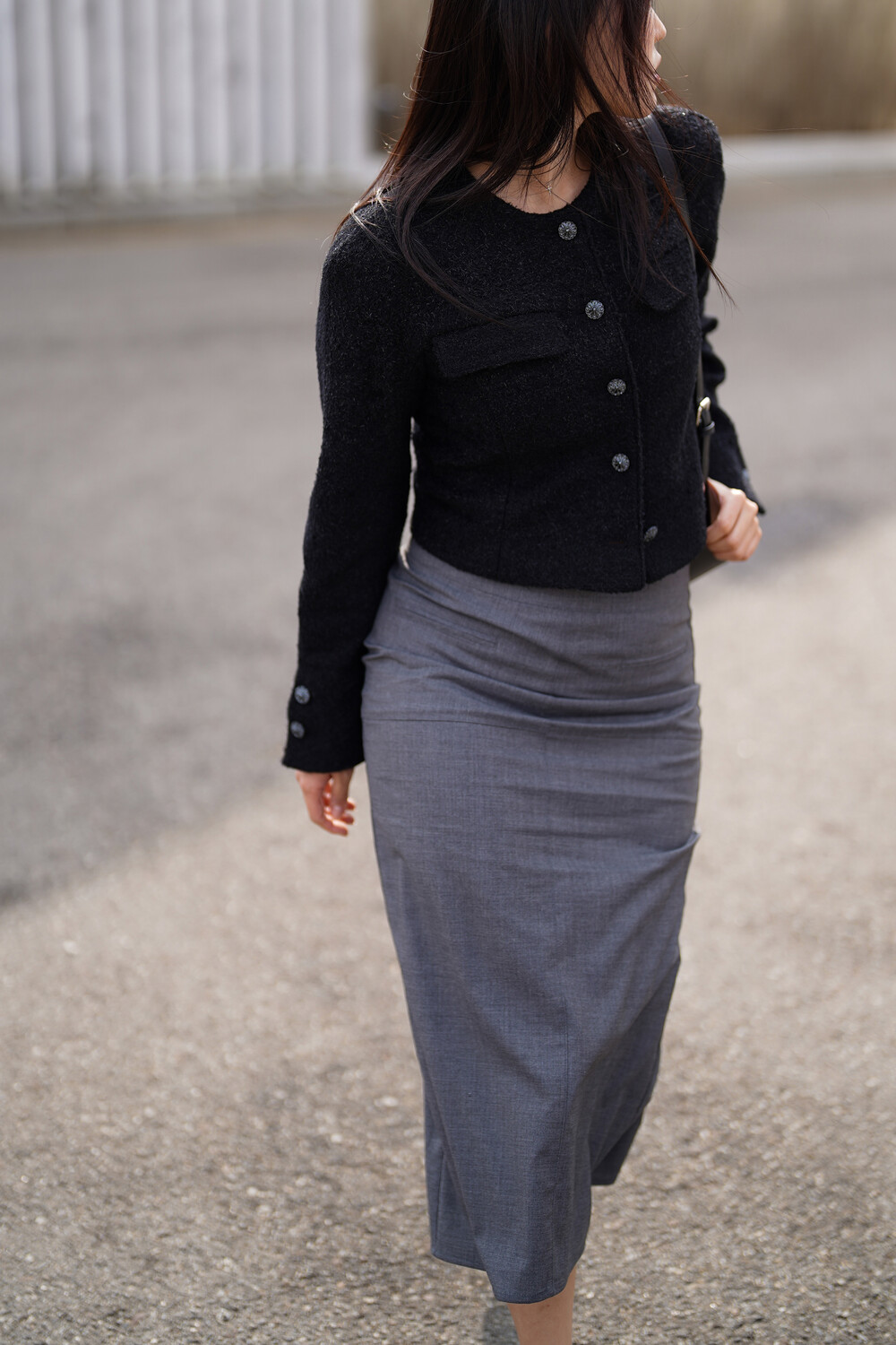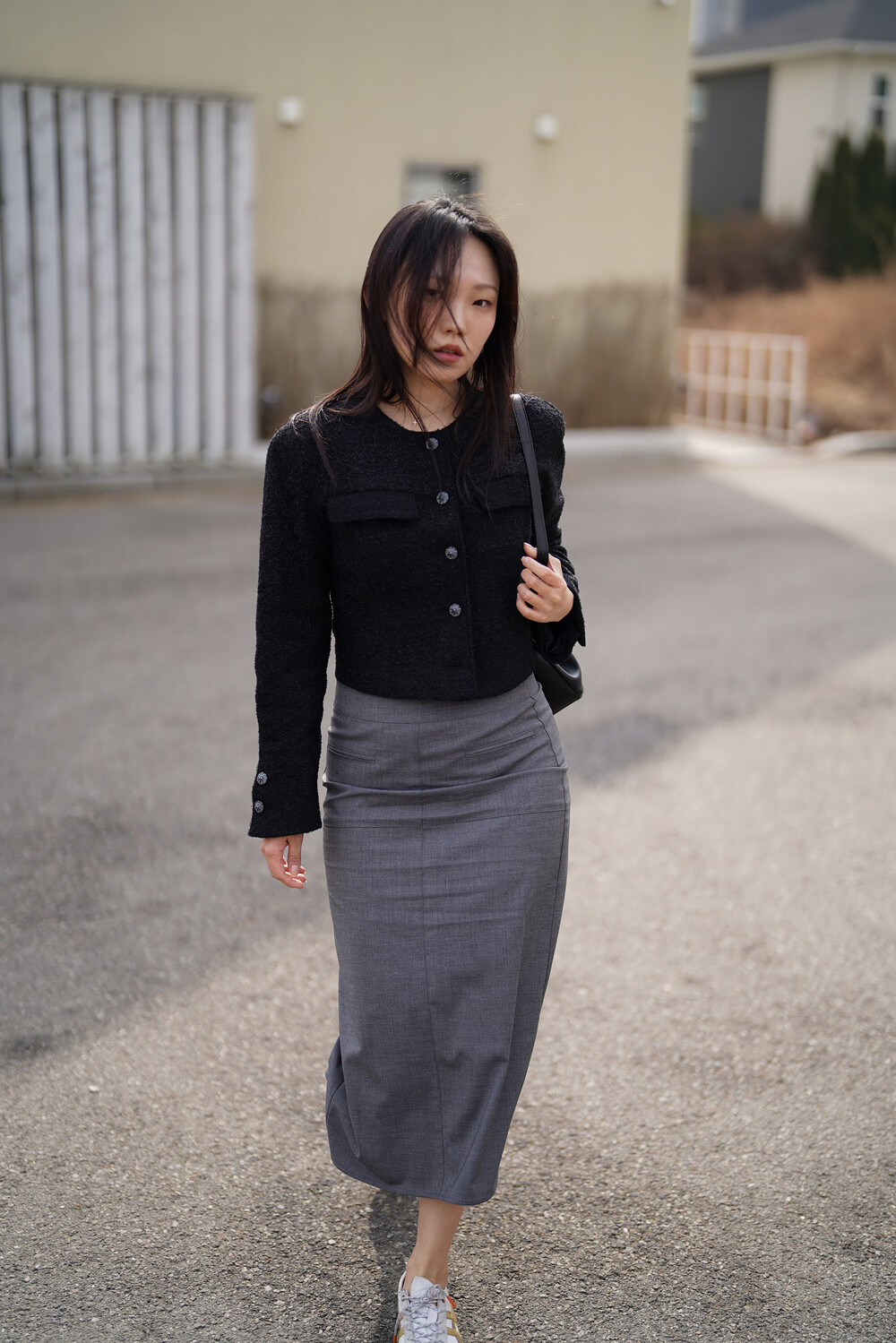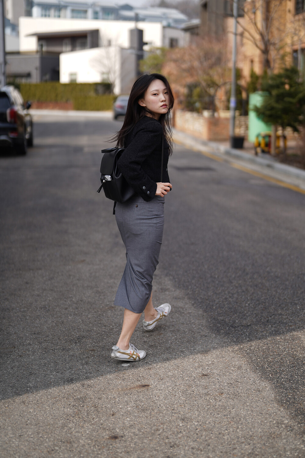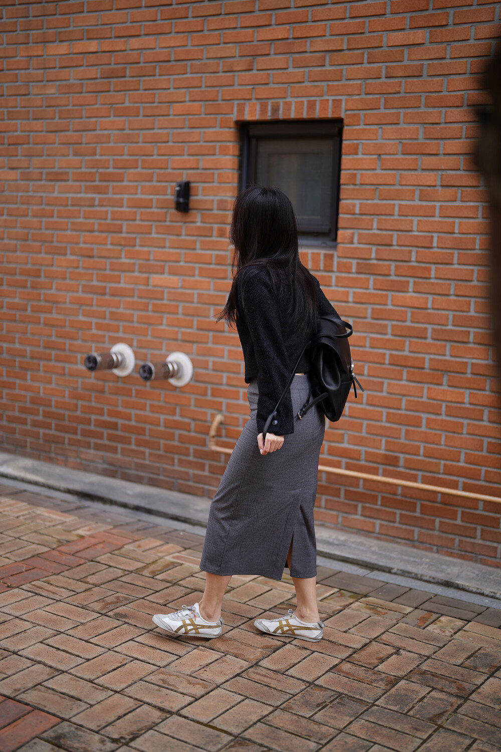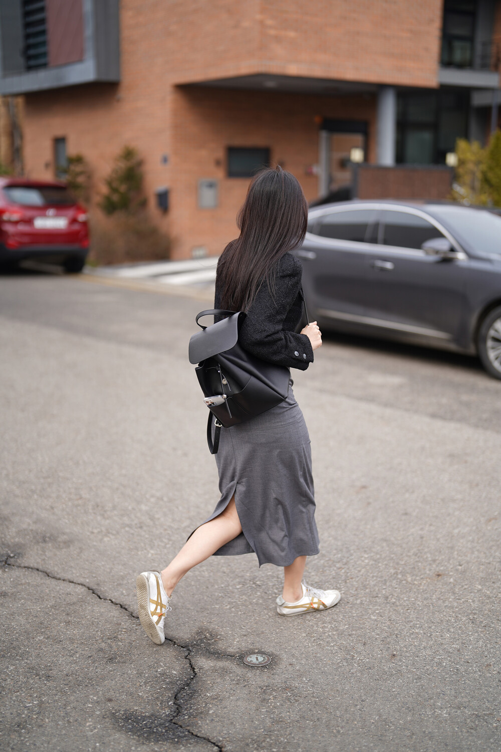 뒷트임이 무릎라인부터 트여 걸음걸이도 시원하게 걸을 수 있어요.