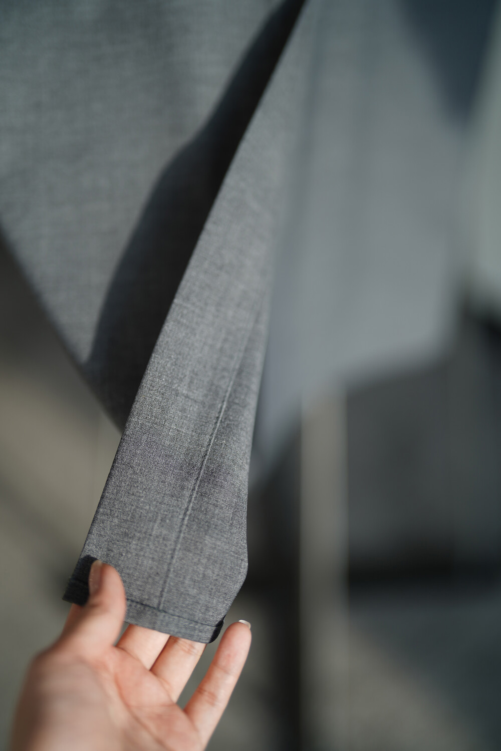 고급 정장에서 사용되는 밀도가 아주 높은 180수 TR(폴리에스테르+레이온)에 스판사가 섞여 얇으면서도 유연하고 탄력있는 스판감을 느낄 수 있어요.