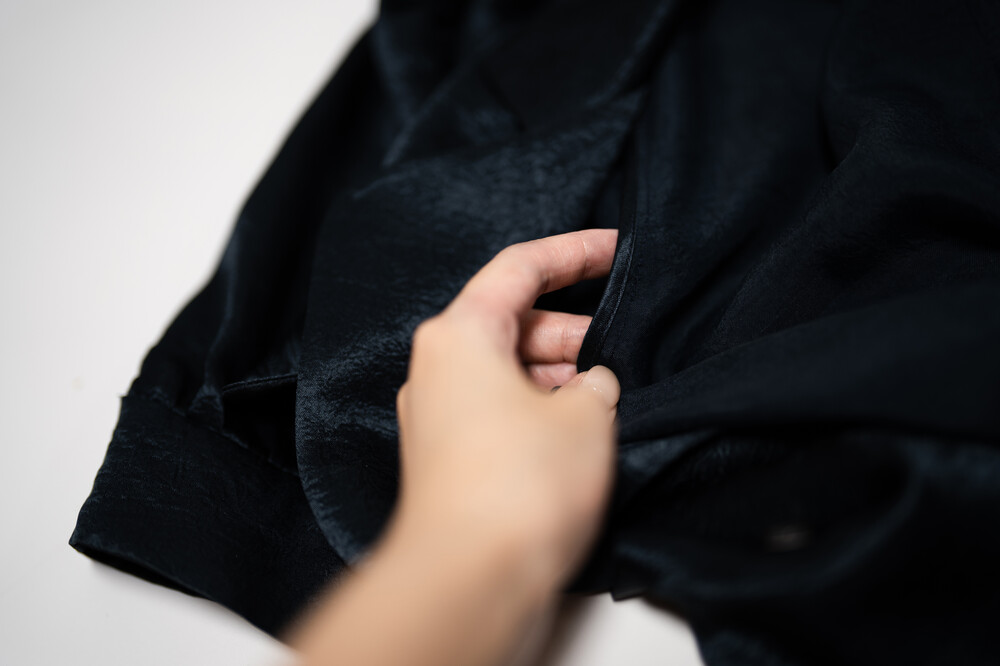 *안단의 안쪽 모습입니다. 실크심지로 감싸 박아 마감하여 아주 얇고 깔끔하게 마감된 모습입니다.