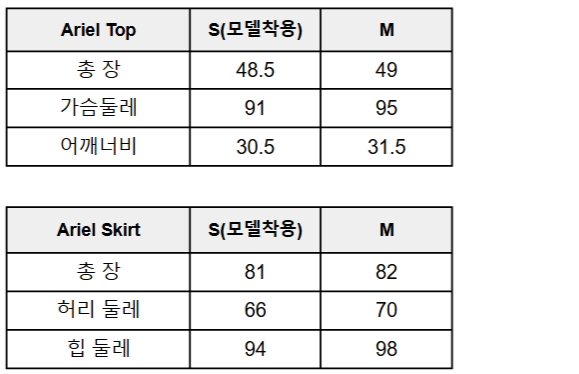 - 착용사이즈 : 탑 S, 스커트 S 사이즈 착용