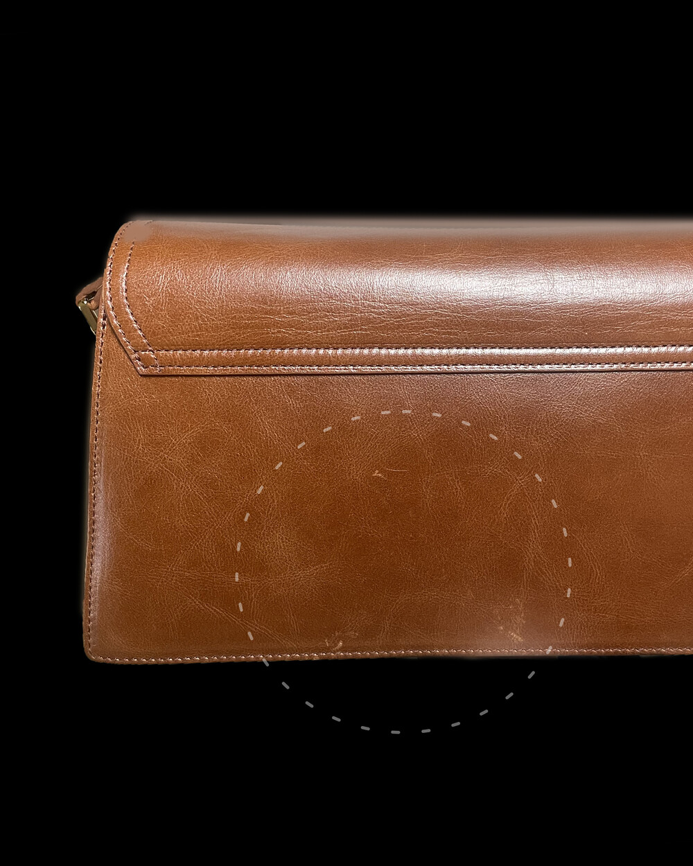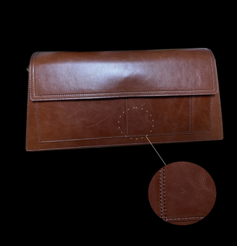 - 특별한 하자 없으나 뚜껑 중앙에 주름 있음(천연가죽 자연적 특성)